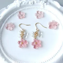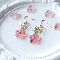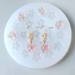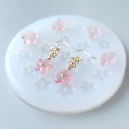 一度に20個の小さな桜のパーツをおつくり頂けます。小ぶりなサイズがとってもかわいい♪底面が平たいカボションタイプなのでピアスやイヤリング、リングなどの台座に貼り付けるだけで簡単に完成!