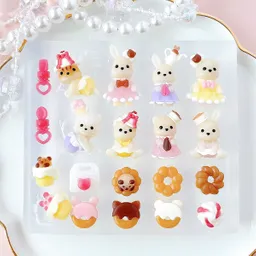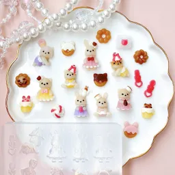 レジン液を流し込むだけで、うさぎの人形・ギフトを抱えたポーズ・帽子をかぶったモチーフなど、表情豊かなデザインをお楽しみいただけます。