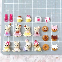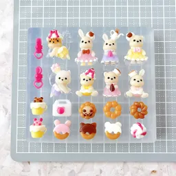 ミニチュアの他にも、キーホルダー、アクセサリーパーツ、シャカシャカ封入用チャームなど多用途に活用可能。
