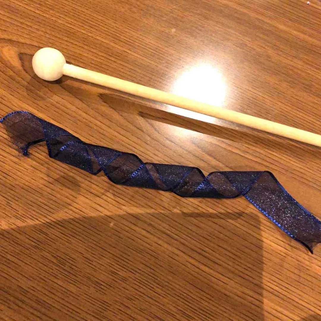 - 5リボンをくるくるにしたかったので、木琴のバチに巻きつけてみました