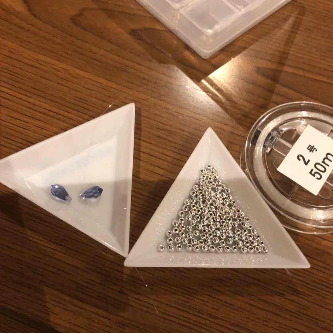 - 8ビーズのパーツを作ります。 スワロにテグス。